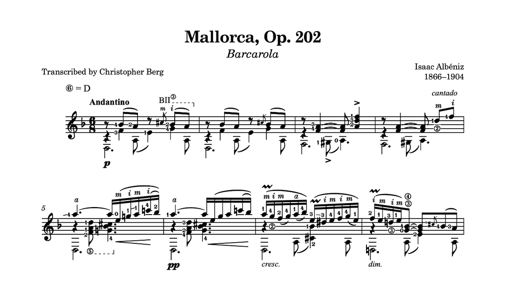 Isaac Albéniz: Mallorca (Barcarola), Op. 202, trans. Christopher Berg (score)