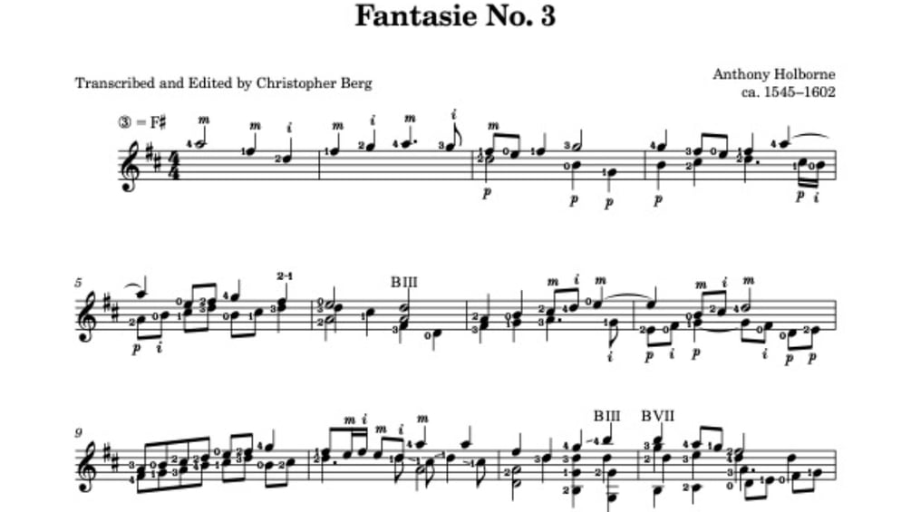 Anthony Holborne: Fantasie No. 3, trans. Christopher Berg (score)