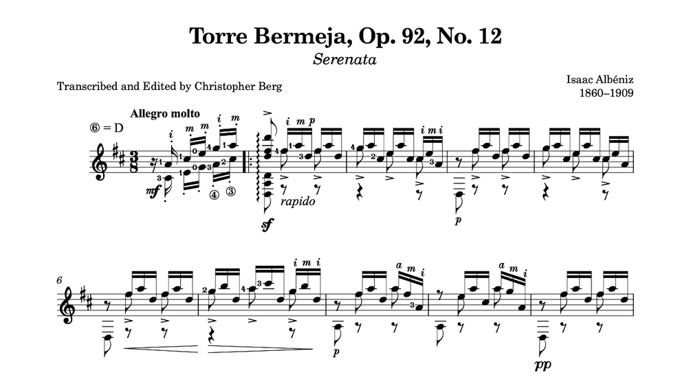 Isaac Albéniz: Torre Bermeja, Op. 92, No. 12, trans. Christopher Berg (score)